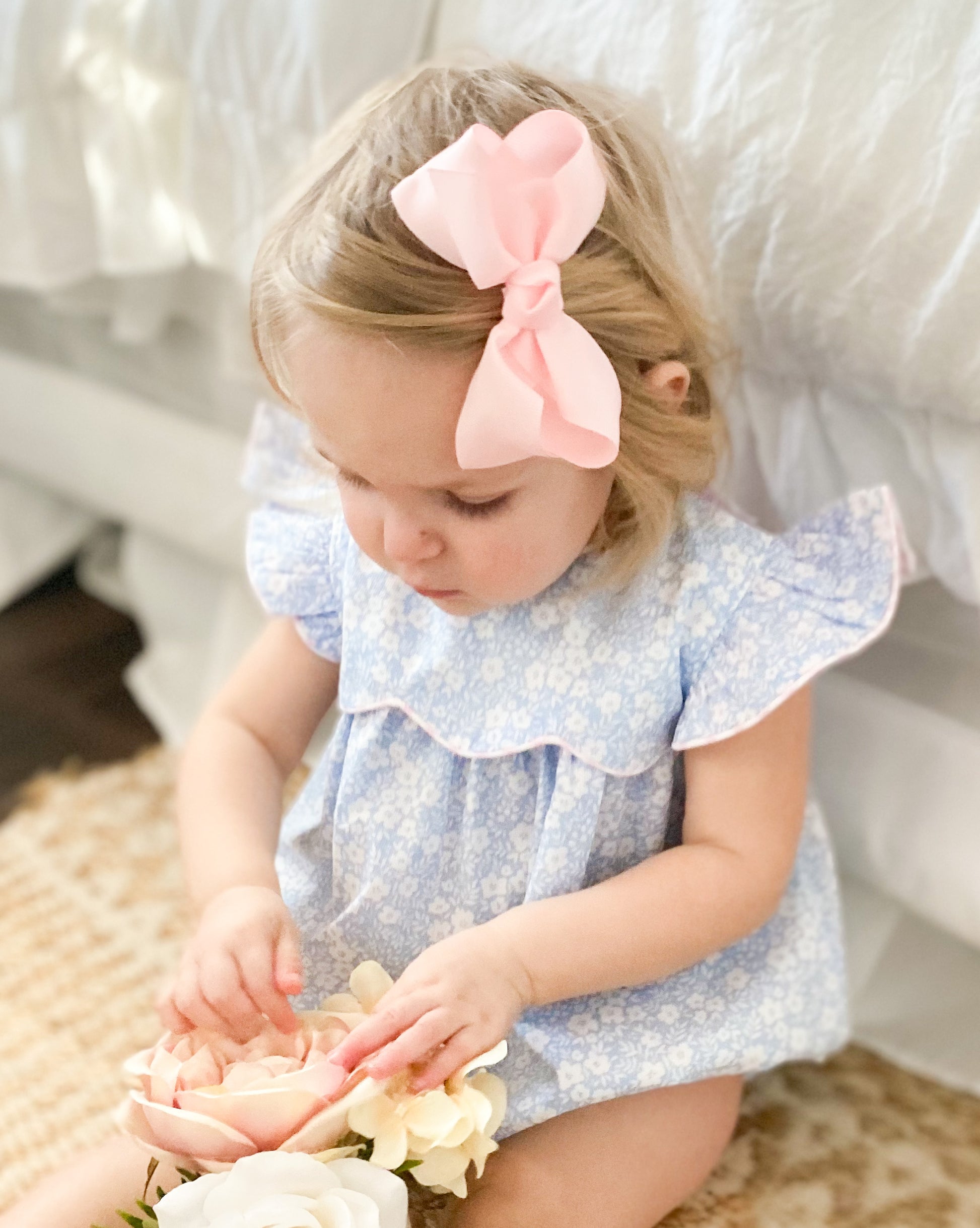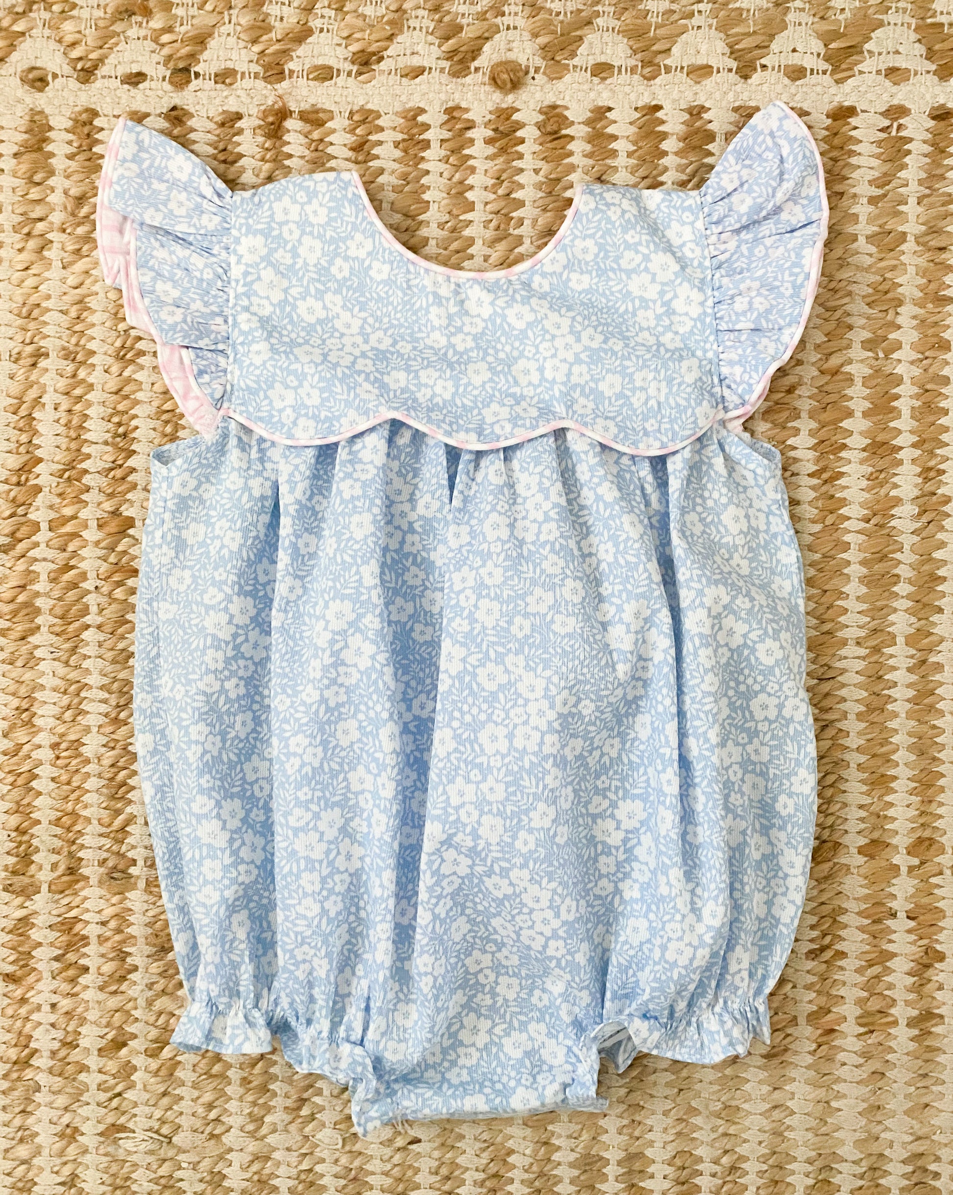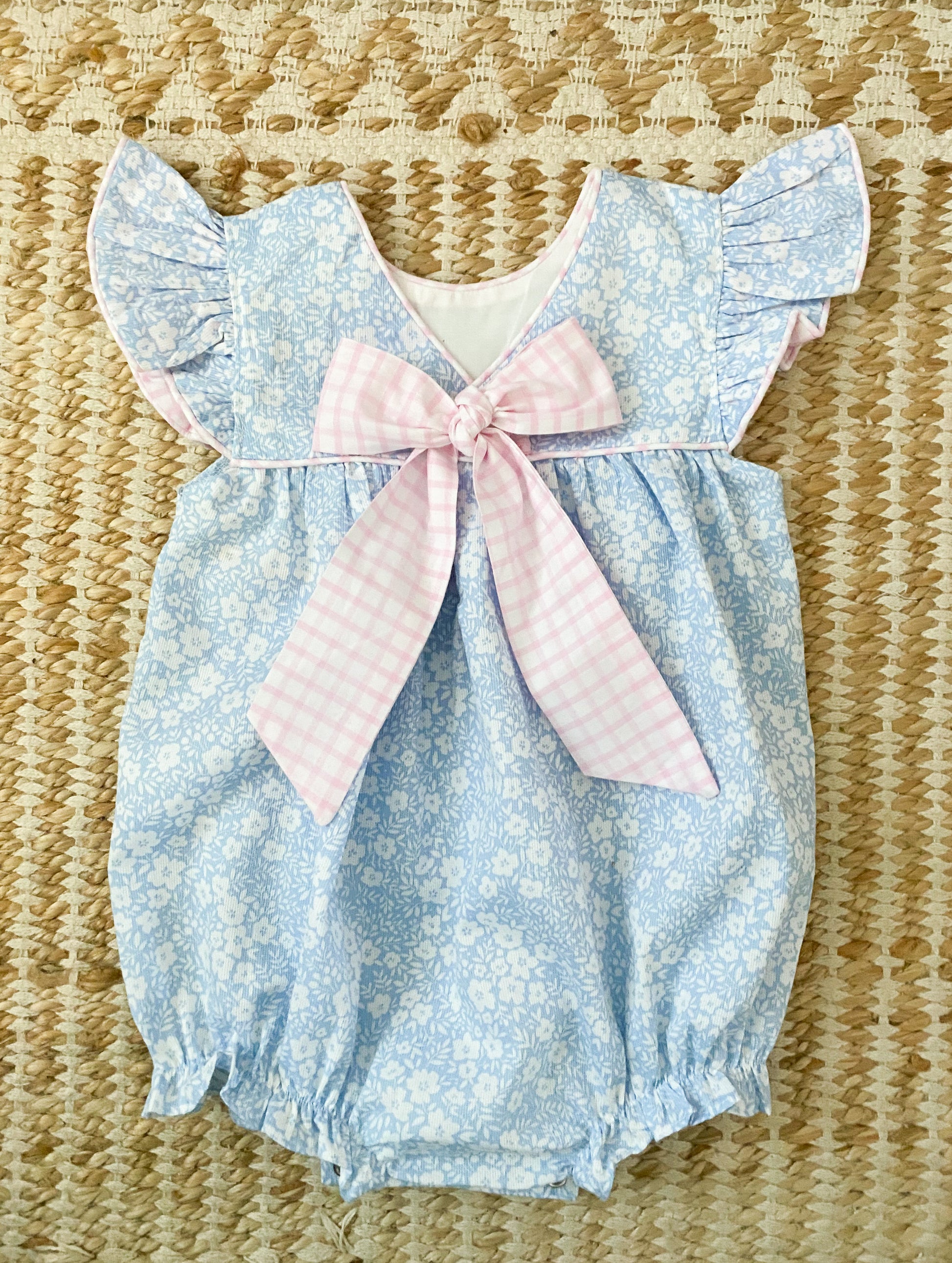 Blue Floral Bubble with Angel Wing Sleeves 6M-3T