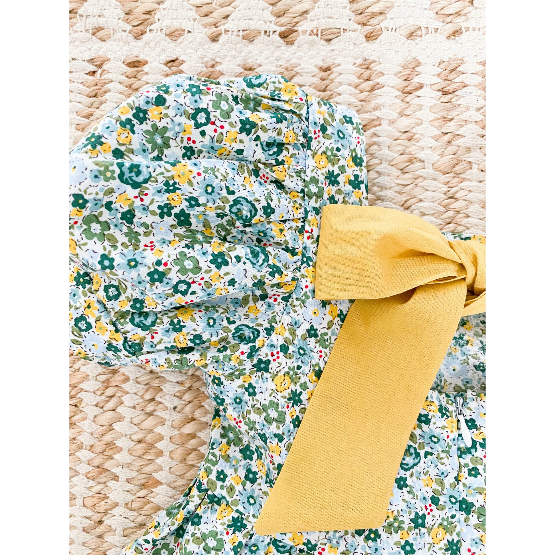 Mini Blossoms Dress with Bow and Puff Sleeves