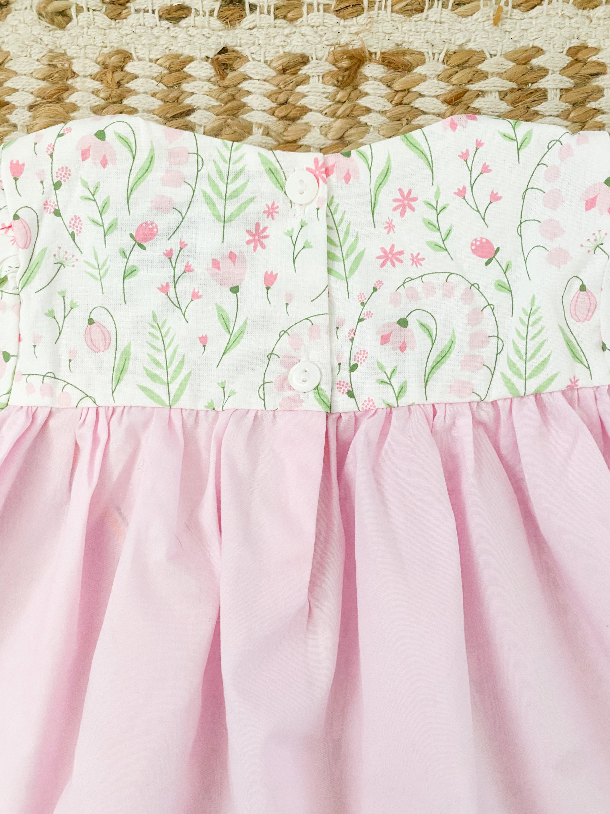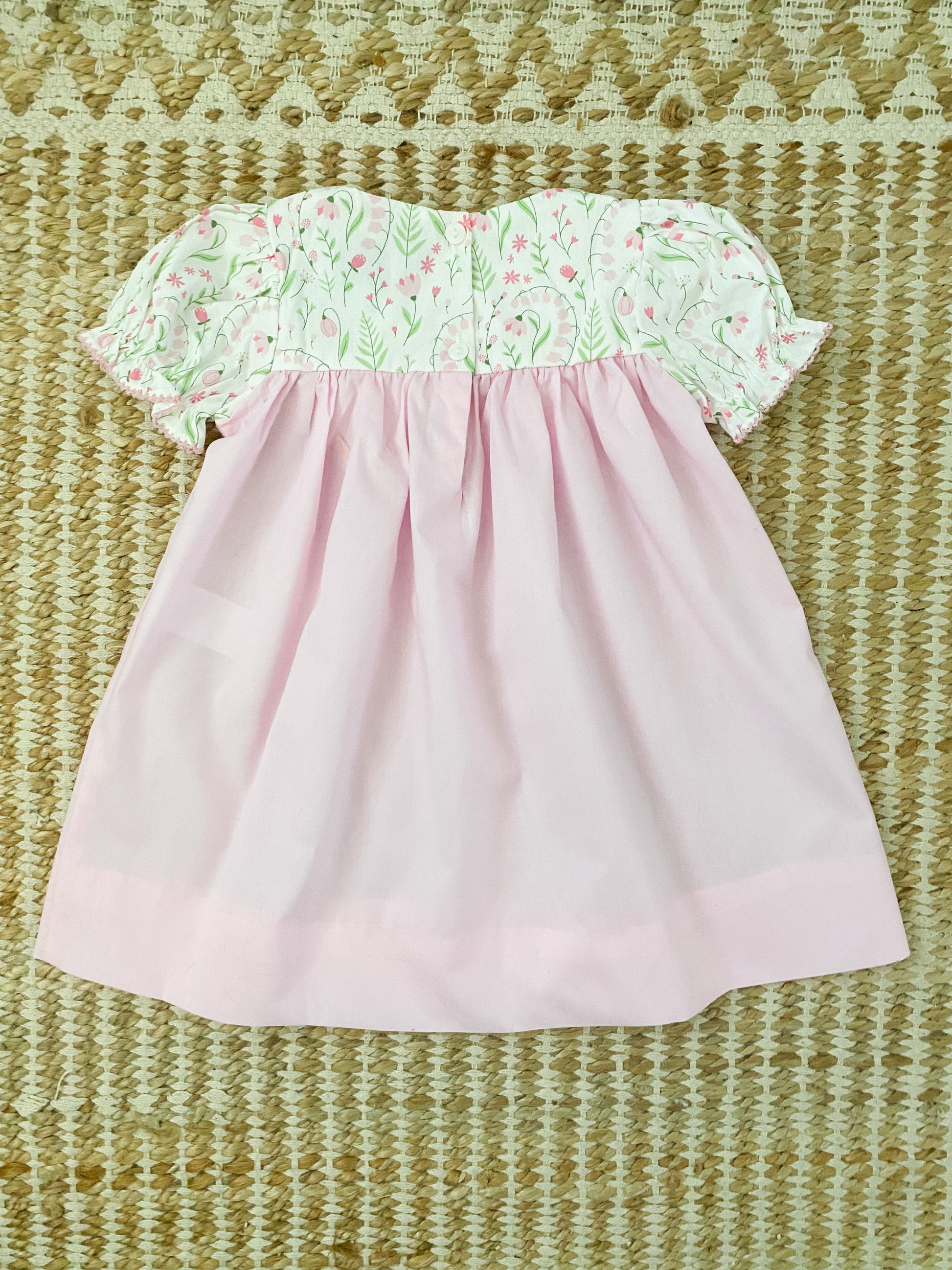 Pink Floral Dress with Scallop Top and Puff Sleeves